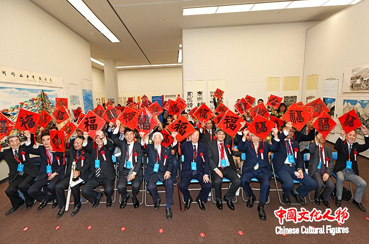 日本前内阁府特命担当大臣、日本众议院议员江崎铁磨,原日展常务理事、日本书艺院理事长、全日本书道联盟副理事长杭迫柏树,中国书法家协会理事、中国美术家协会理事、西泠印社理事容铁,中国文化人物杂志社社长王保胜,日展审査员、日本著名画家藤岛博文,创价学会副会长、富士美术馆事务局局长金子朗,东京中国文化中心主任罗玉泉,东洋书道艺术学会会长、理事长松本啓祐,全日本华侨华人联合会副会长、世界艺术家联盟主席、全日本华侨华人春晩总导演程波,在日中国企业协会会长王家驯,朝日新闻社社长助理、编辑委员会委员、中国局局长坂尻信义,东京都日中友好协会副会长永田哲二等中日两国嘉宾为展览剪彩