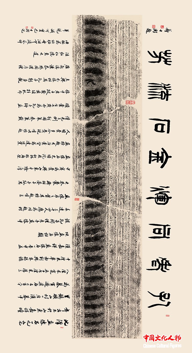 『孔老共に辉き 金石のように流芳す』(孔子が老子に会う汉画像石)137cm×274cm 苏士澍书道作品