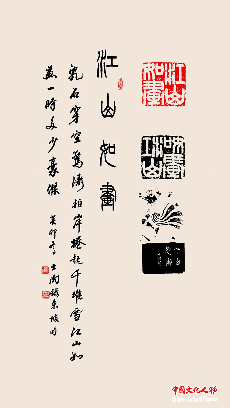 『江山如画』(苏东坡词『念奴娇·赤壁懐古』より抜粋) 43cm×68cm 苏士澍篆刻书道作品