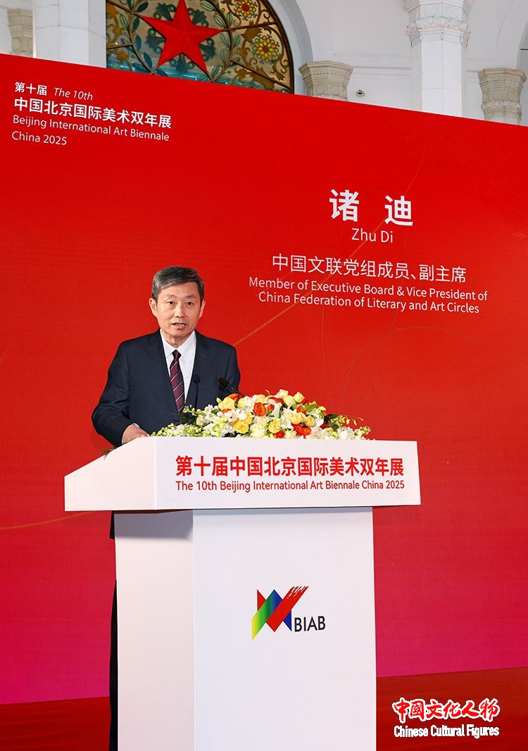 中国美术家协会主席范迪安在致辞中表示,北京国际美术双年展始终坚持立足北京、展现中国、连通世界的定位,既展示中国美术新时代创新成果,也呈现国际艺术新趋势。本届双年展蕴含深厚文化内涵与当代文化理想,艺术语言的创新融入鲜明时代道义,充分展现当代中国与全球艺术形态的多样共生景象。