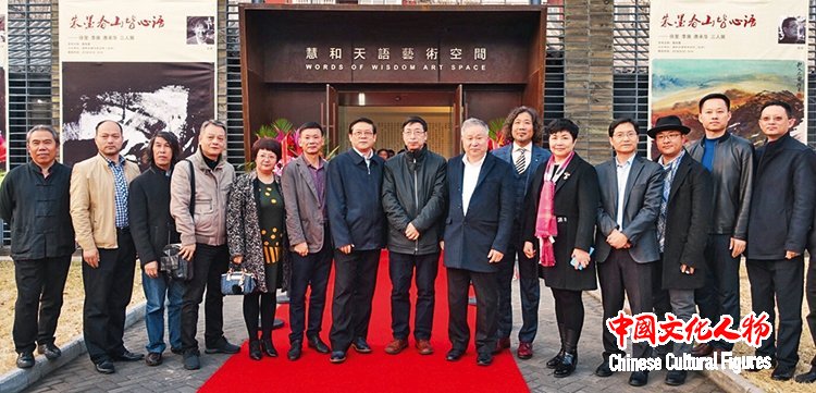 出席“朱墨春山皆心语——徐里、李庚、唐承华三人展”开幕式的艺术家嘉宾合影