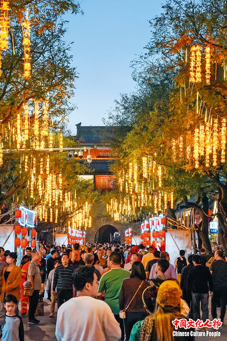 华灯初上,宛平城楼下的街巷热闹非凡,历史的厚重与人间的烟火气在此交融