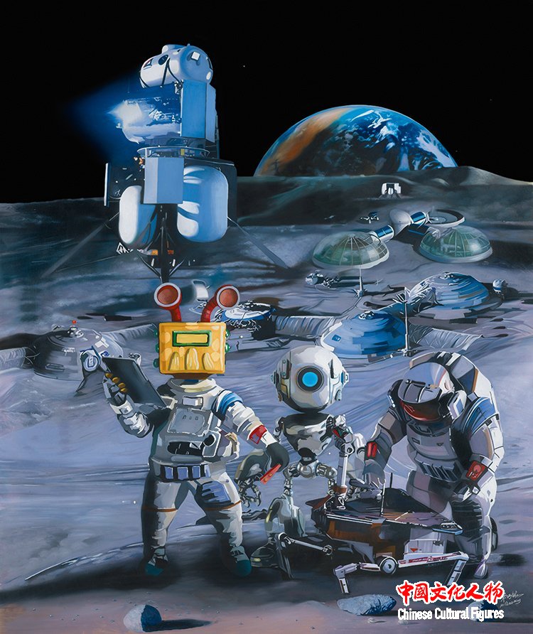 米巧铭在“未来系列”作品中,以如梦似幻、精妙绝伦的想法,幻化出灵魂与色彩的融合,幻化出一个奇妙的世界,作者用小孩的视角创造出一个未来不确定的人工智能机器人,同时突出了在信息化、网络化与智能化的科技发展大背景下,作为社会发展很重要的机器人个体未来的呈现形式。在原本庄重的艺术作品中添加了一线幻想之念,让解读变得轻松有趣。