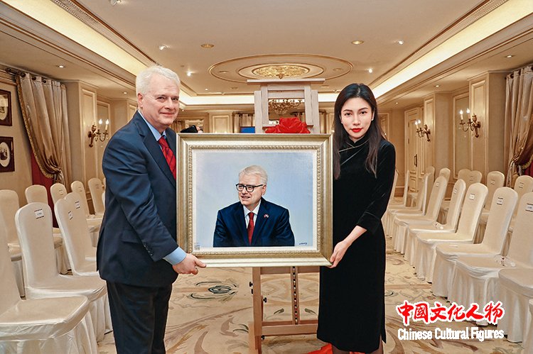 2024年,匈牙利第一任女总统诺瓦克·卡塔琳收藏米巧铭作品并合影留念