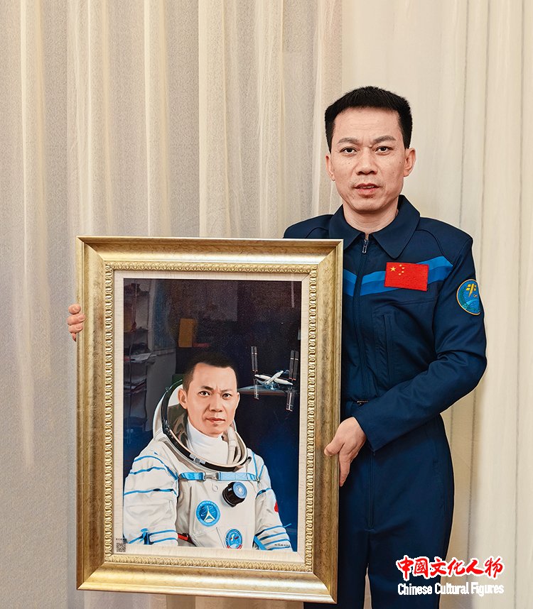 2023年,英雄航天员汤洪波收藏米巧铭作品并合影留念