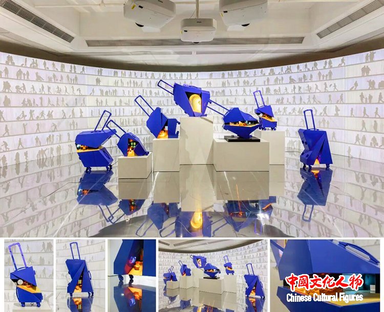 陈喜钊 《城市旅人》 460x120x160cm 不锈钢、投影仪 2025