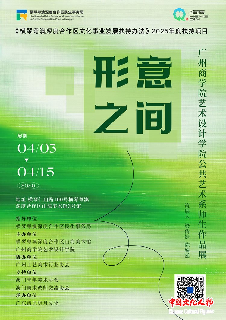 中国文化人物(记者 马将平)2026年4月3日,由横琴粤澳深度合作区民生事务局指导,横琴粤澳深度合作区山海美术馆与广州商学院艺术设计学院联合主办、广州工艺美术行业协会协办,澳门青年美术协会、澳门美术教师交流协会支持,广东清风明月文化承办的“形意之间”——广州商学院艺术设计学院公共艺术系师生作品展,在横琴山海美术馆正式拉开帷幕。展览以跨媒介多元创作,全面展现学院“科技赋能、服务社会、艺科融合”的办学成果,为粤港澳大湾区艺术交流与美育实践注入崭新活力。