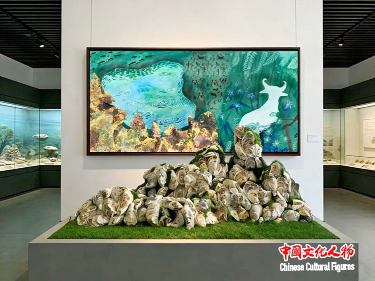 梁钰盈 《壳覆新生》——湛江湖光岩装置艺术设计 画:120×60cm 裝置:120×60×45cm 画:岩彩、烧箔、珠光顏料 裝置:生蚝壳、仿真青苔 2026