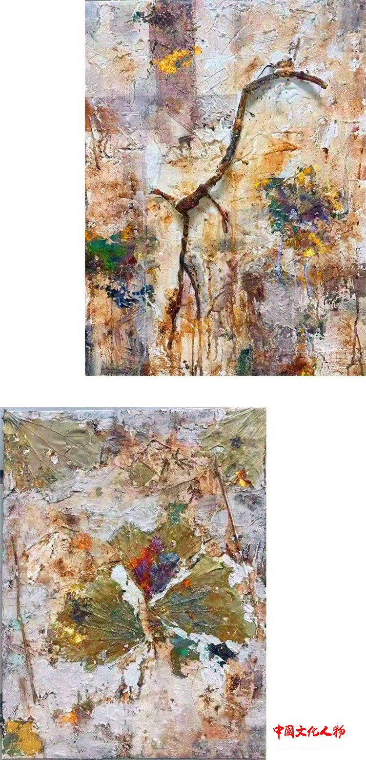庄碧莹 《枯》、《残韵》 60x80cm(2幅) 布面综合材料 2025