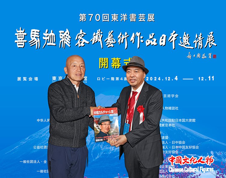 由东洋书道艺术学会主办,中国文化人物杂志社共同主办,中国驻日本国大使馆、读卖新闻东京总社支持,世界新闻联盟、一般社团法人日中协会、公益社团法人日中友好协会、东京都日中友好协会、西泠印社、一般社团法人全日本华侨华人社团联合会、日本中国企业协会、一般社团法人世界艺术家联盟、日本胜佳株式会社、公益财团法人地球之友等单位协办的“第70届东洋书艺展——喜马拉雅——容铁艺术作品(日本)邀请展”开幕式于12月7日在日本东京都美术馆隆重举行