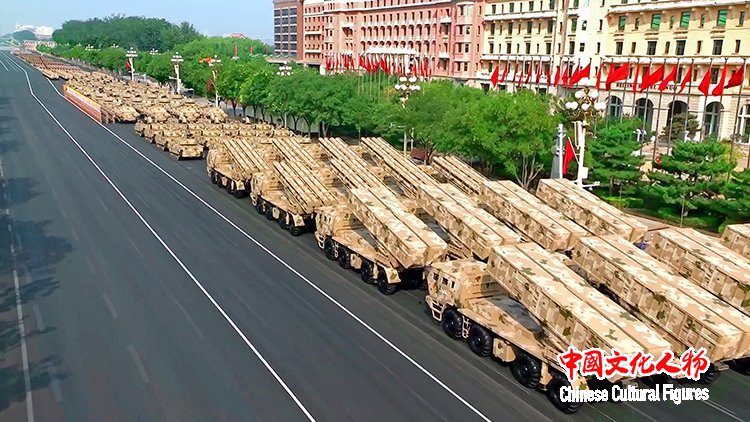 战旗猎猎,铁流滚滚。80面抗战英模部队荣誉旗帜组成的战旗方队,承载着历史荣光浩荡而来。这些英雄的旗帜、胜利的旗帜、不朽的旗帜,激励着人民军队勇往直前。装备方队编组陆上作战群、海上作战群、防空反导群、信息作战群、无人作战群、后装保障群、战略打击群隆隆驶来,接受检阅。新型坦克、无人智能、网电作战、高超声速、防空反导、战略导弹……从抗战时期土枪土炮到今天新型作战力量,国产现役主战装备和战略重器在天安门城楼前一一通过,展示坚决捍卫国家主权安全发展利益、坚定维护世界和平的钢铁意志和强大实力。