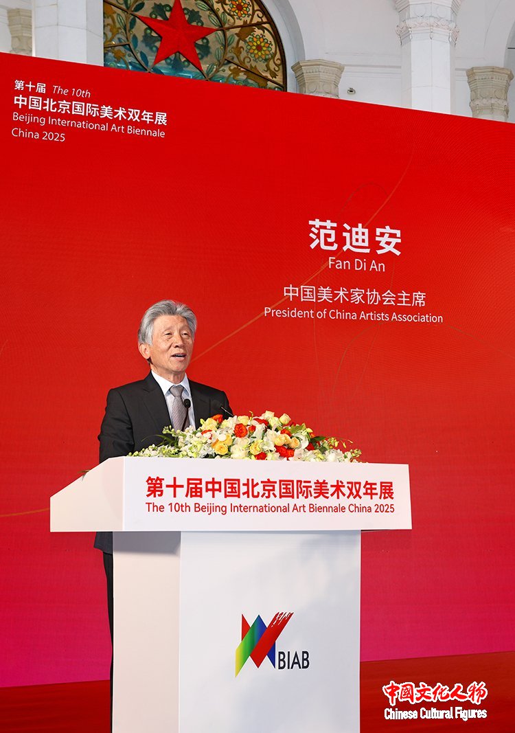 中国美术家协会主席范迪安在致辞中表示,北京国际美术双年展始终坚持立足北京、展现中国、连通世界的定位,既展示中国美术新时代创新成果,也呈现国际艺术新趋势。本届双年展蕴含深厚文化内涵与当代文化理想,艺术语言的创新融入鲜明时代道义,充分展现当代中国与全球艺术形态的多样共生景象。