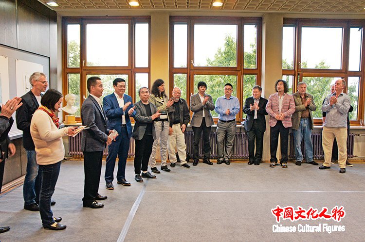 李庚与出席庆祝中德建交45周年“融合”中德艺术家作品展(德国站)开幕式的中德艺术家嘉宾合影留念