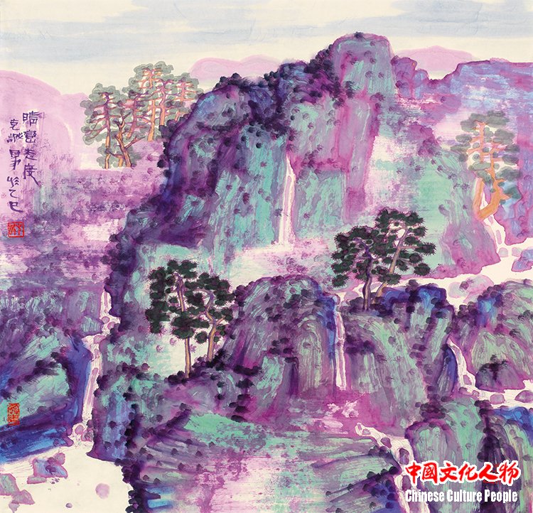 Niu Kecheng deeply explores the traditional color system in color-ink freehand landscape paintings. He connects the “Five Elements” philosophy with the “Five Colors” system and masters hue and color temperature. He also inherits the Northern School painting style of the “Two Lis” (Li Sixun and Li Zhaodao) from the Tang dynasty, as well as the traditions of light crimson landscape paintings and green landscape paintings. Through these, he expands the aesthetic connotation of Oriental art.