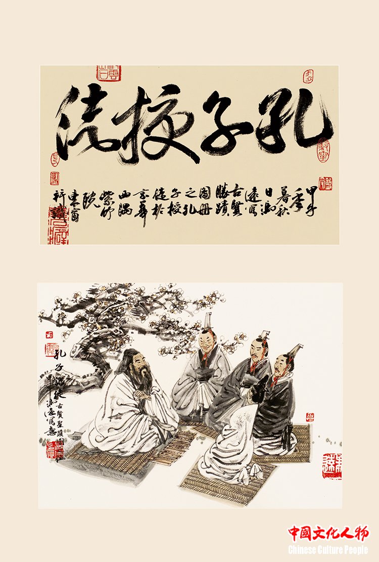 “Confucius Instructing His Disciples” (58×82cm) by Feng Yuan
