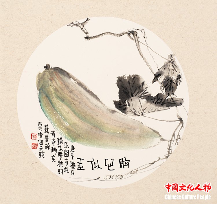 Jia Guangjian has in-depth research on the traditions of freehand flower-and-bird and mogu paintings of the Ming and Qing dynasties. He has especially absorbed the essence of two schools of painting: the Qingteng Baiyang (meaning “Blue Vine and White Sun”), represented by Xu Wei and Chen Chun, and the Wumen. By combining traditional composition with modern structure, the lotus joints, autumn melons, red flowers, and ink leaves in his works all exude vitality and a fresh, agile atmosphere.