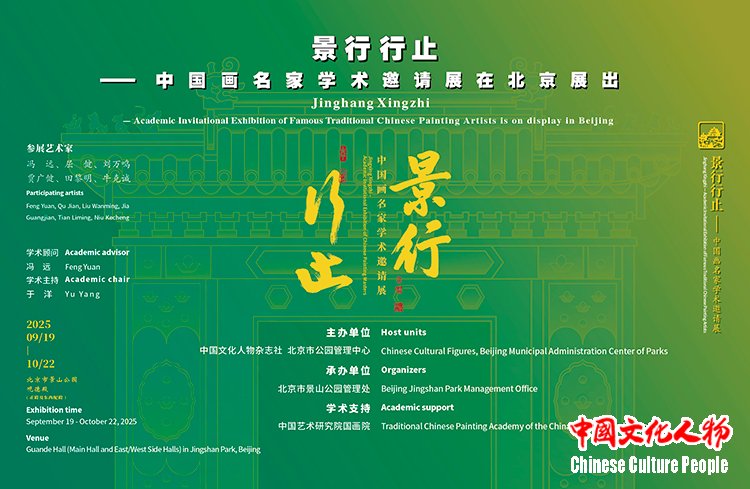 The “Jinghang Xingzhi — Academic Invitational Exhibition of Famous Traditional Chinese Painting Artists”, supported by the Traditional Chinese Painting Academy of the China National Academy of Arts, organized by Beijing Municipal Administration Center of Parks and the Chinese Cultural Figures (magazine), and hosted by Beijing Jingshan Park Management Office, will be exhibited at the Guande Hall (Main Hall and East/West Side Halls) of Jingshan Park from September 19 to October 22, 2025. The exhibition features over 50 masterpieces of figure, landscape, and flower-and-bird paintings by six contemporary Chinese painting masters renowned for their moral integrity and artistic excellence: Feng Yuan, Qu Jian, Liu Wanming, Jia Guangjian, Tian Liming, and Niu Kecheng. Admission to the exhibition is free of charge throughout its duration.