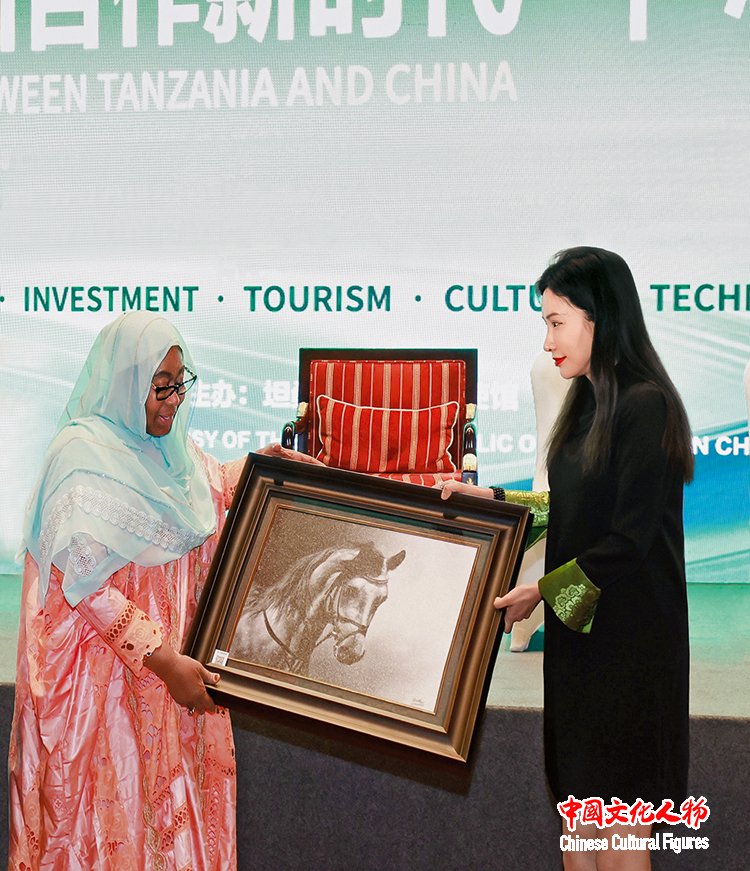 2024年,坦桑尼亚总统萨米娅·苏卢胡·哈桑收藏米巧铭作品并合影留念