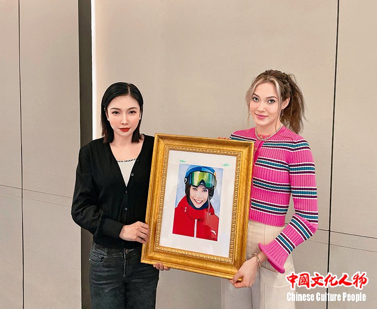 2022年,北京冬奥会自由式滑雪冠军谷爱凌收藏米巧铭作品并合影留念