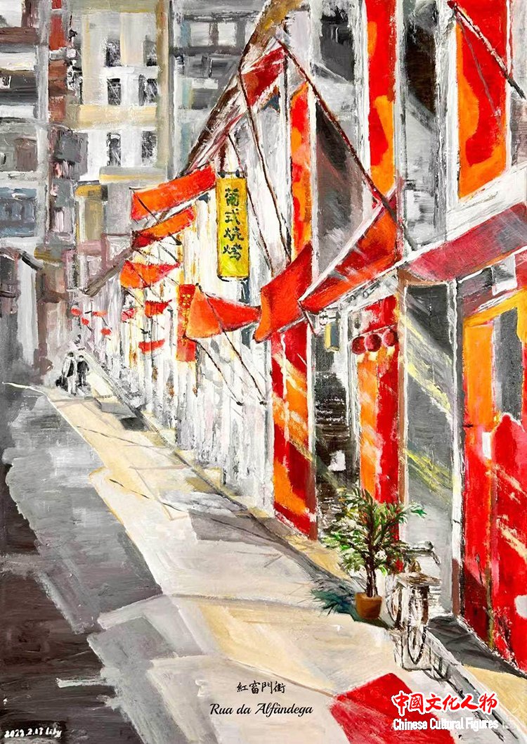 Lily的画笔,从不满足于复刻地标,而是以“新澳门人”的独特视角,敏锐地挖掘着小城里那些被忽略的细节。水彩的通透、油画的沉厚与丙烯的锐度,共同调和出她独特的艺术语言——这既是双重文化身份在她生命画布上的交融,亦是她对澳门这座城市的深情凝视。在此凝神驻足,于方寸之间,见天地,见历史……在此,见彼!