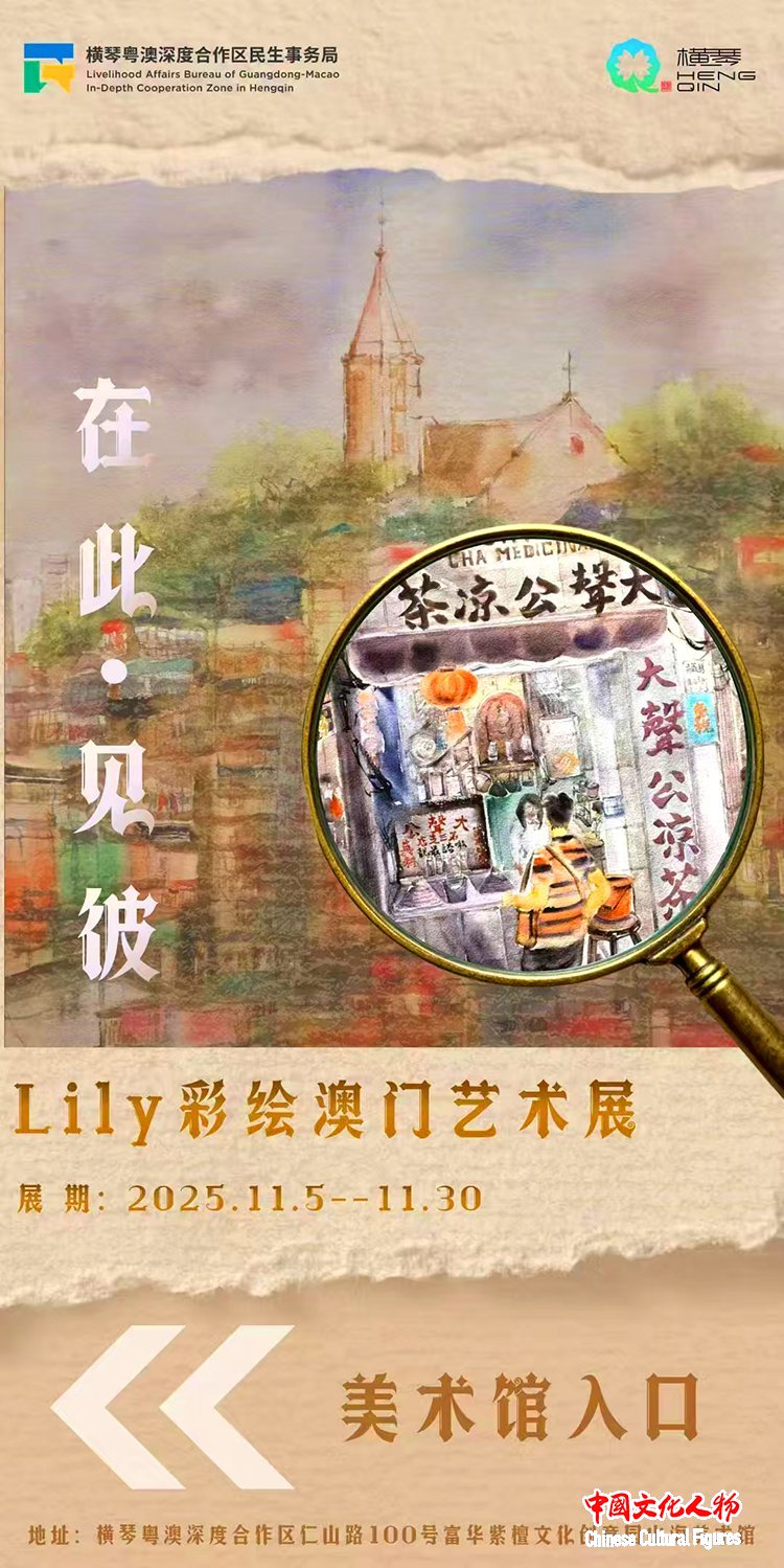 11月8日,由横琴粤澳深度合作区民生事务局、澳门福建同乡总会支持,横琴粤澳深度合作区山海美术馆主办,横琴富华紫檀博物馆、澳门城市大学广东校友会协办,广东清风明月文化集团承办的“在此·见彼——Lily彩绘澳门艺术展”在横琴山海美术馆隆重开幕