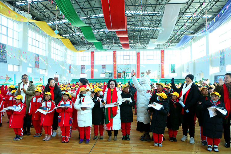 马彩青一行与接受捐赠的师生一起在捐赠现场交流互动