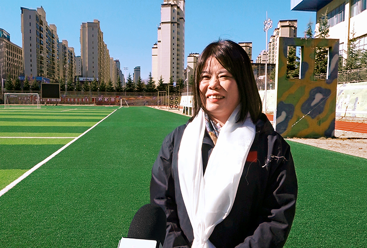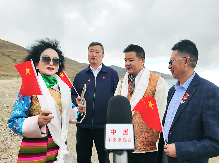 深圳造梦空间人工智能科技董事长闫燕燕在西藏公益捐赠活动现场接受媒体采访