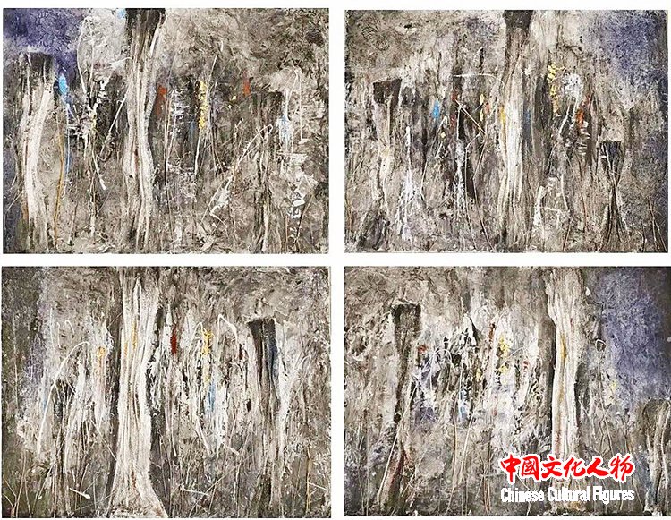 郭茵茵 《生长》 60×80cm*4 布面综合材料 2025