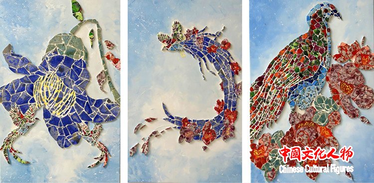 林翠莲 《碎瓷重绎红棉栖羽》 50x80cm*3 陶瓷碎瓷片 2026