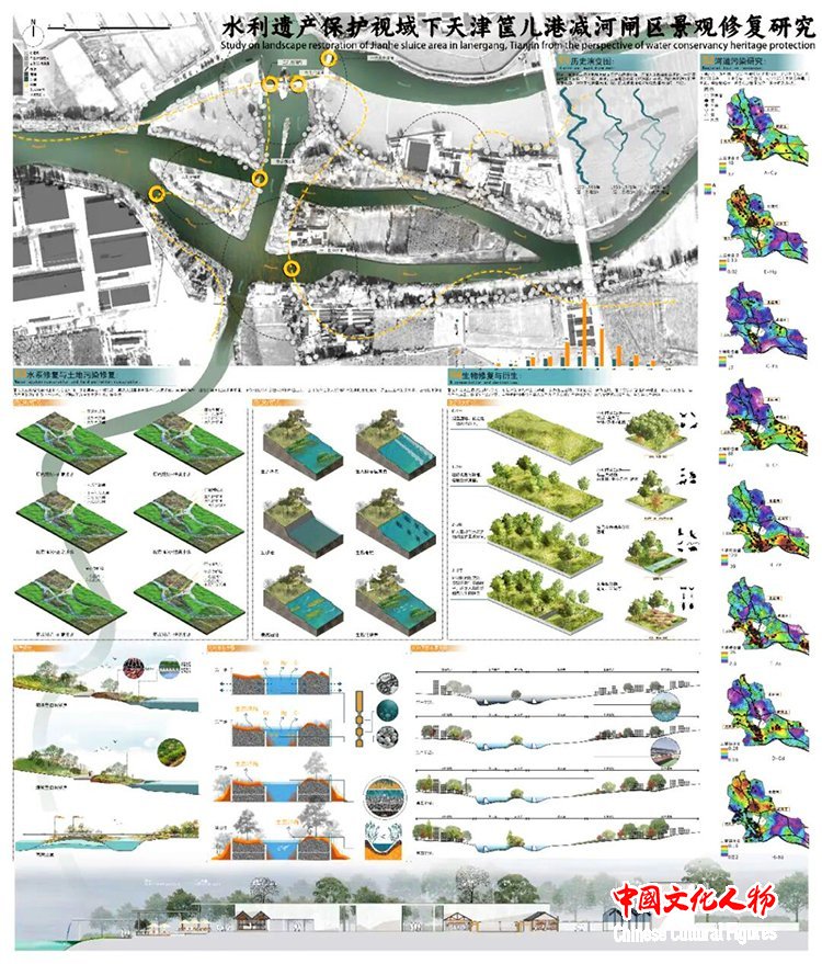 作品说明:本项目《水利遗产保护视域下天津筐儿港减河闸区景观修复研究》,依托于国家社科基金艺术学项目“大运河文化带(京津冀段)文化遗产群保护与传承路径研究(18BH15)”,以京杭大运河水利遗产保护与再利用为背景展开。