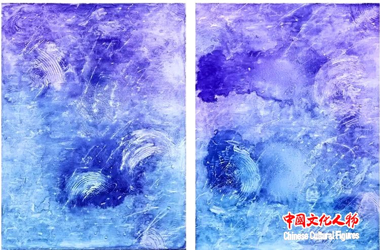 王惠影 《紫雾洇蓝》 80x60cm*2 布面综合材料 2025