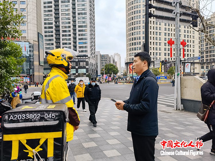 2022年,柴闪闪在上海街头调研人民群众工作状况
